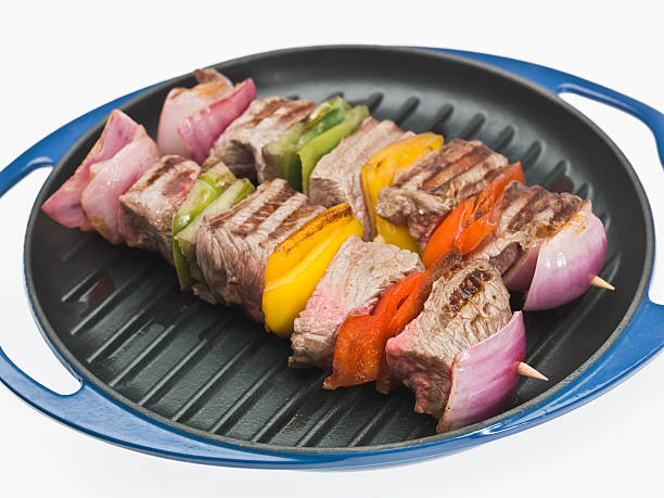 Pour ce grand classique, il faut 3 cuillères à table d’huile d’olive, 1 cuillère à table de jus de citron, ½ cuillère à thé de romarin séché, ½ cuillère à thé de sel, ½ cuillère à thé de poivre noir du moulin, 1l de bifteck coupé en cubes et 1 gros poivron rouge coupé en carrés. Pour que tout soit au top, pensez à utiliser une pique à brochette de qualité.